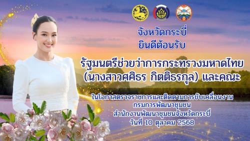 พช.เหนือคลอง ขอเชิญชวนร่วมต้อนรับ รัฐมนตรีช่วยว่าการกระทรวงมหาดไทย (นางสาวศศิธร กิตติธรกุล) และคณะ ในโอกาสตรวจราชการและติดตามการขับเคลื่อนงานกรมการพัฒนาชุมชน ในวันที่ 10 ตุลาคม 2568